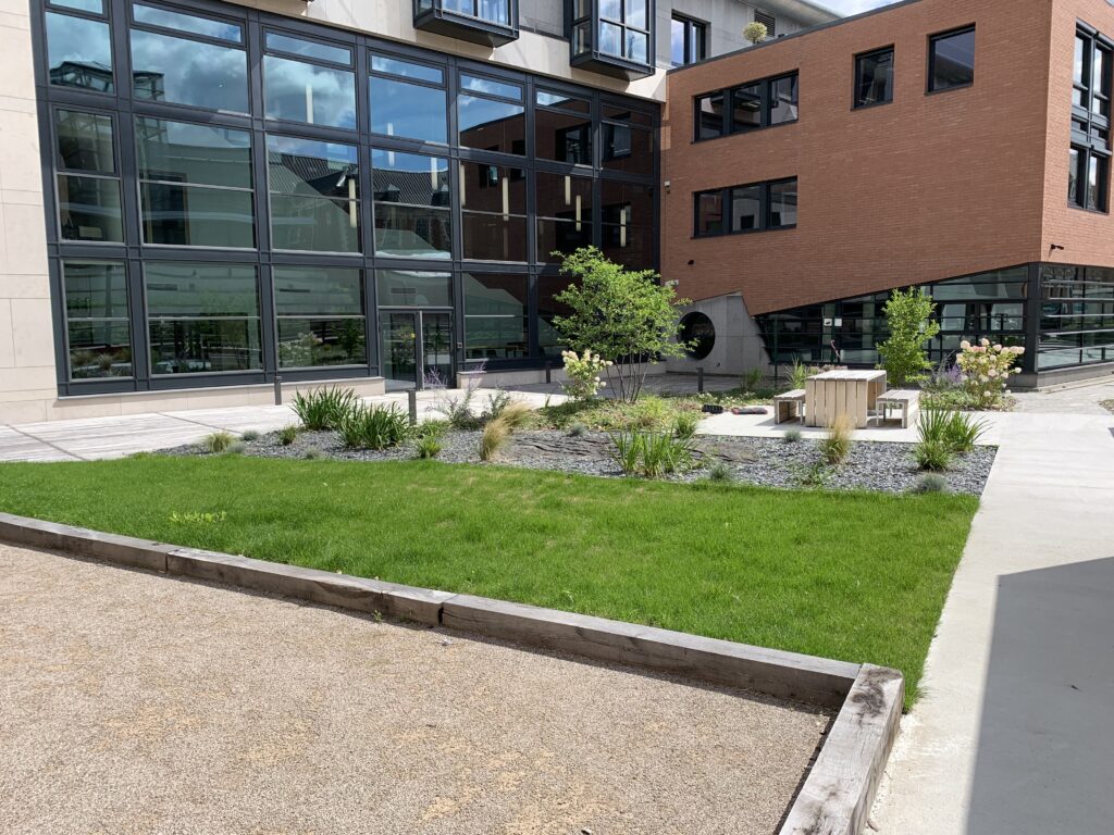 Enrobé – Paillage – Pavage – Plantations – Mobilier